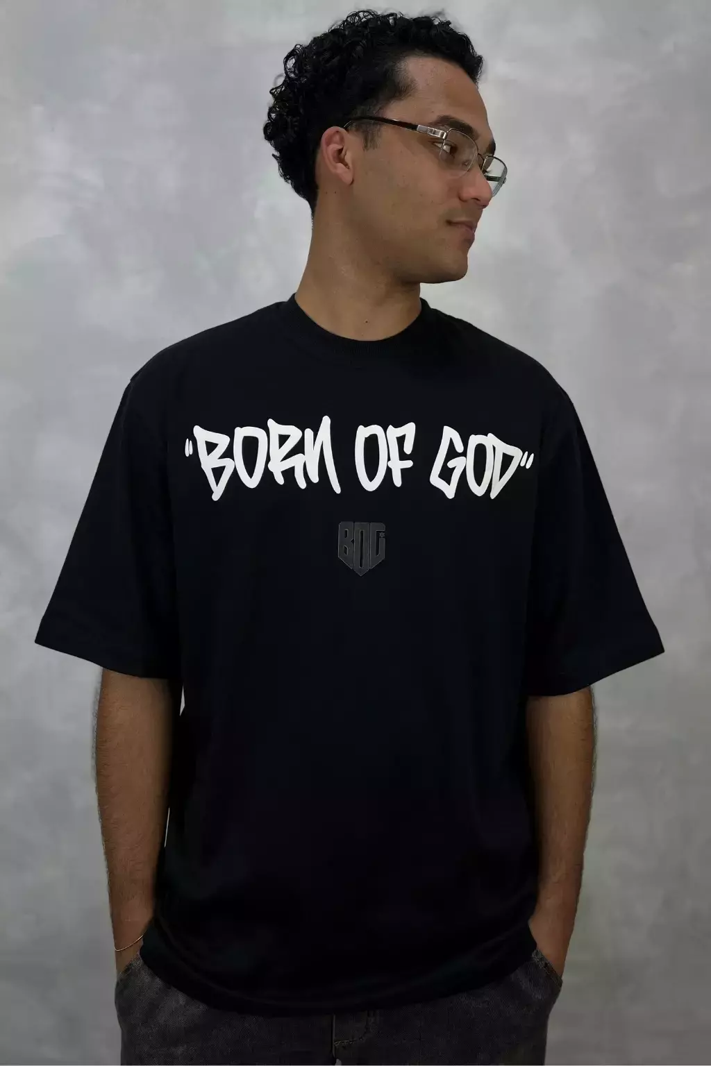 Minimalista, direta e cheia de identidade, a estampa "Born of God" é pra quem carrega a essência do Reino no peito todos os dias. O lettering estilo grafite traz atitude e autenticidade, enquanto o detalhe emborrachado BOG completa o visual com um toque moderno e urbano.
